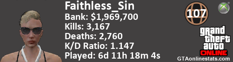 <a href="http://GTAonlinestats.com/showplayer/Faithless_Sin/2"><img src="http://GTAonlinestats.com/signature/Faithless_Sin/2/sig.png" alt="Faithless_Sin" border="0" /></a>