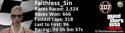 <a href="http://GTAonlinestats.com/showplayer/Faithless_Sin/2"><img src="http://GTAonlinestats.com/racesignature/Faithless_Sin/2/sig.png" alt="Faithless_Sin" border="0" /></a>