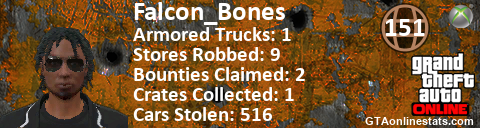 <a href="http://GTAonlinestats.com/showplayer/Falcon_Bones"><img src="http://GTAonlinestats.com/signature/Falcon_Bones/sig.png" alt="Falcon_Bones" border="0" /></a>