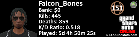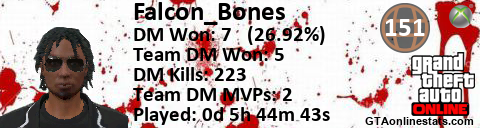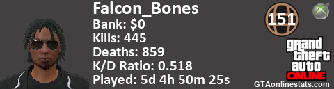<a href="http://GTAonlinestats.com/showplayer/Falcon_Bones"><img src="http://GTAonlinestats.com/dmsignature/Falcon_Bones/sig.png" alt="Falcon_Bones" border="0" /></a>