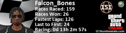 <a href="http://GTAonlinestats.com/showplayer/Falcon_Bones"><img src="http://GTAonlinestats.com/racesignature/Falcon_Bones/sig.png" alt="Falcon_Bones" border="0" /></a>