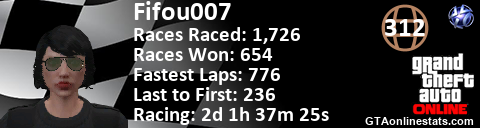 [URL=http://GTAonlinestats.com/showplayer/Fifou007][IMG]http://GTAonlinestats.com/racesignature/Fifou007/sig.png[/IMG][/URL]