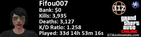 <a href="http://GTAonlinestats.com/showplayer/Fifou007"><img src="http://GTAonlinestats.com/randomsignature/Fifou007/sig.png" alt="Fifou007" border="0" /></a>