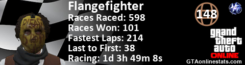 [URL=http://GTAonlinestats.com/showplayer/Flangefighter/2][IMG]http://GTAonlinestats.com/racesignature/Flangefighter/2/sig.png[/IMG][/URL]