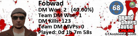 [URL=http://GTAonlinestats.com/showplayer/Fobwad][IMG]http://GTAonlinestats.com/dmsignature/Fobwad/sig.png[/IMG][/URL]