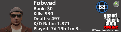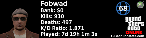 <a href="http://GTAonlinestats.com/showplayer/Fobwad"><img src="http://GTAonlinestats.com/dmsignature/Fobwad/sig.png" alt="Fobwad" border="0" /></a>