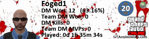 [URL=http://GTAonlinestats.com/showplayer/Foged1/2][IMG]http://GTAonlinestats.com/dmsignature/Foged1/2/sig.png[/IMG][/URL]