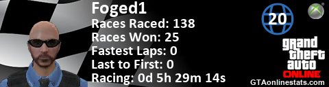 [URL=http://GTAonlinestats.com/showplayer/Foged1/2][IMG]http://GTAonlinestats.com/racesignature/Foged1/2/sig.png[/IMG][/URL]