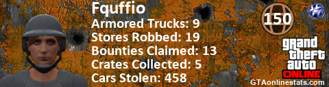 [URL=http://GTAonlinestats.com/showplayer/Fquffio/2][IMG]http://GTAonlinestats.com/crimesignature/Fquffio/2/sig.png[/IMG][/URL]