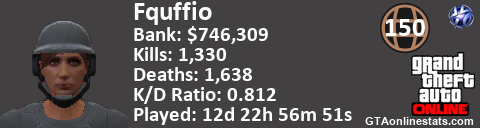 <a href="http://GTAonlinestats.com/showplayer/Fquffio/2"><img src="http://GTAonlinestats.com/greysignature/Fquffio/2/sig.png" alt="Fquffio" border="0" /></a>