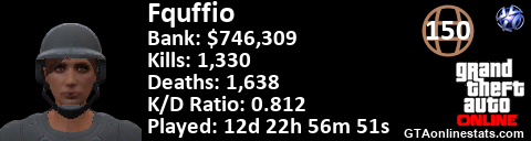 [URL=http://GTAonlinestats.com/showplayer/Fquffio/2][IMG]http://GTAonlinestats.com/signature/Fquffio/2/sig.png[/IMG][/URL]