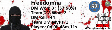 <a href="http://GTAonlinestats.com/showplayer/Freedomna"><img src="http://GTAonlinestats.com/dmsignature/Freedomna/sig.png" alt="Freedomna" border="0" /></a>