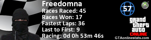 <a href="http://GTAonlinestats.com/showplayer/Freedomna"><img src="http://GTAonlinestats.com/racesignature/Freedomna/sig.png" alt="Freedomna" border="0" /></a>