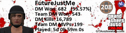 [URL=http://GTAonlinestats.com/showplayer/FutureJustMe][IMG]http://GTAonlinestats.com/dmsignature/FutureJustMe/sig.png[/IMG][/URL]