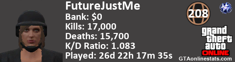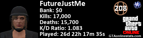 <a href="http://GTAonlinestats.com/showplayer/FutureJustMe"><img src="http://GTAonlinestats.com/signature/FutureJustMe/sig.png" alt="FutureJustMe" border="0" /></a>