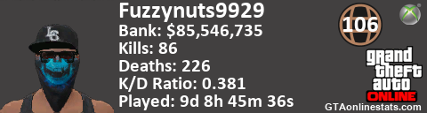 [URL=http://GTAonlinestats.com/showplayer/Fuzzynuts9929/2][IMG]http://GTAonlinestats.com/greysignature/Fuzzynuts9929/2/sig.png[/IMG][/URL]