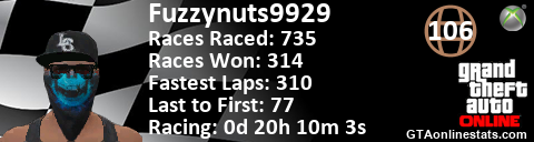 [URL=http://GTAonlinestats.com/showplayer/Fuzzynuts9929/2][IMG]http://GTAonlinestats.com/racesignature/Fuzzynuts9929/2/sig.png[/IMG][/URL]