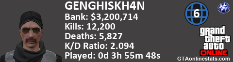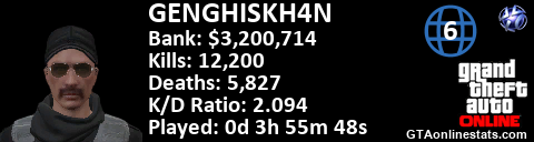[URL=http://GTAonlinestats.com/showplayer/GENGHISKH4N/2][IMG]http://GTAonlinestats.com/signature/GENGHISKH4N/2/sig.png[/IMG][/URL]