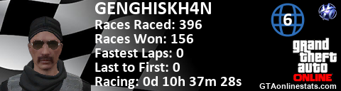 [URL=http://GTAonlinestats.com/showplayer/GENGHISKH4N/2][IMG]http://GTAonlinestats.com/racesignature/GENGHISKH4N/2/sig.png[/IMG][/URL]