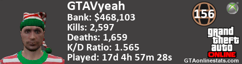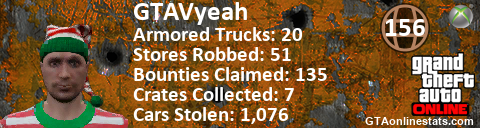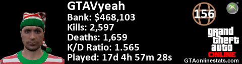 <a href="http://GTAonlinestats.com/showplayer/GTAVyeah"><img src="http://GTAonlinestats.com/signature/GTAVyeah/sig.png" alt="GTAVyeah" border="0" /></a>