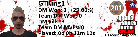 [URL=http://GTAonlinestats.com/showplayer/GTKing1/2][IMG]http://GTAonlinestats.com/dmsignature/GTKing1/2/sig.png[/IMG][/URL]