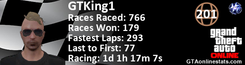 [URL=http://GTAonlinestats.com/showplayer/GTKing1/2][IMG]http://GTAonlinestats.com/racesignature/GTKing1/2/sig.png[/IMG][/URL]