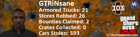 [URL=http://GTAonlinestats.com/showplayer/GTRiNsane][IMG]http://GTAonlinestats.com/crimesignature/GTRiNsane/sig.png[/IMG][/URL]