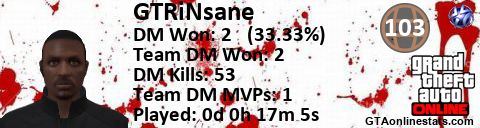 [URL=http://GTAonlinestats.com/showplayer/GTRiNsane][IMG]http://GTAonlinestats.com/dmsignature/GTRiNsane/sig.png[/IMG][/URL]
