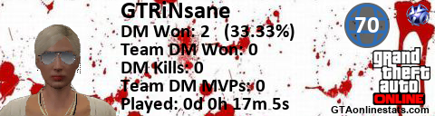 [URL=http://GTAonlinestats.com/showplayer/GTRiNsane/2][IMG]http://GTAonlinestats.com/dmsignature/GTRiNsane/2/sig.png[/IMG][/URL]