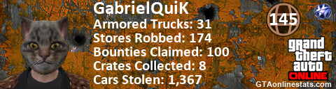 [URL=http://GTAonlinestats.com/showplayer/GabrielQuiK][IMG]http://GTAonlinestats.com/randomsignature/GabrielQuiK/sig.png[/IMG][/URL]