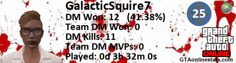 [URL=http://GTAonlinestats.com/showplayer/GalacticSquire7][IMG]http://GTAonlinestats.com/dmsignature/GalacticSquire7/sig.png[/IMG][/URL]
