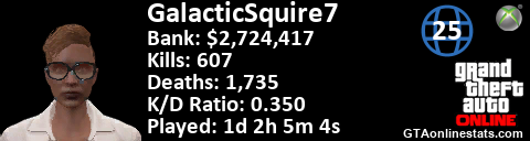 <a href="http://GTAonlinestats.com/showplayer/GalacticSquire7"><img src="http://GTAonlinestats.com/dmsignature/GalacticSquire7/sig.png" alt="GalacticSquire7" border="0" /></a>