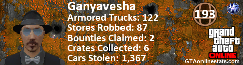 [URL=http://GTAonlinestats.com/showplayer/Ganyavesha][IMG]http://GTAonlinestats.com/signature/Ganyavesha/sig.png[/IMG][/URL]
