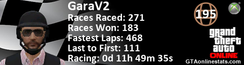<a href="http://GTAonlinestats.com/showplayer/GaraV2"><img src="http://GTAonlinestats.com/racesignature/GaraV2/sig.png" alt="GaraV2" border="0" /></a>