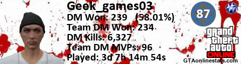 [URL=http://GTAonlinestats.com/showplayer/Geek_games03][IMG]http://GTAonlinestats.com/dmsignature/Geek_games03/sig.png[/IMG][/URL]