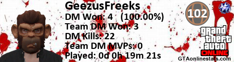 [URL=http://GTAonlinestats.com/showplayer/GeezusFreeks][IMG]http://GTAonlinestats.com/dmsignature/GeezusFreeks/sig.png[/IMG][/URL]