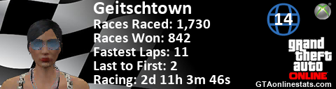 [URL=http://GTAonlinestats.com/showplayer/Geitschtown/2][IMG]http://GTAonlinestats.com/racesignature/Geitschtown/2/sig.png[/IMG][/URL]