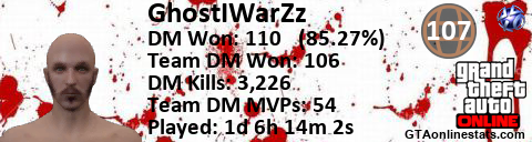 [URL=http://GTAonlinestats.com/showplayer/GhostIWarZz/2][IMG]http://GTAonlinestats.com/greysignature/GhostIWarZz/2/sig.png[/IMG][/URL]