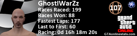 [URL=http://GTAonlinestats.com/showplayer/GhostIWarZz/2][IMG]http://GTAonlinestats.com/racesignature/GhostIWarZz/2/sig.png[/IMG][/URL]