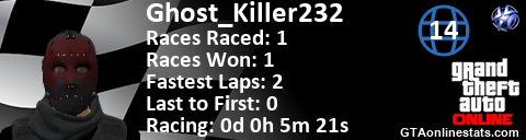 [URL=http://GTAonlinestats.com/showplayer/Ghost_Killer232/2][IMG]http://GTAonlinestats.com/racesignature/Ghost_Killer232/2/sig.png[/IMG][/URL]