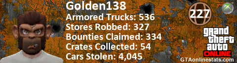 [URL=http://GTAonlinestats.com/showplayer/Golden138][IMG]http://GTAonlinestats.com/crimesignature/Golden138/sig.png[/IMG][/URL]