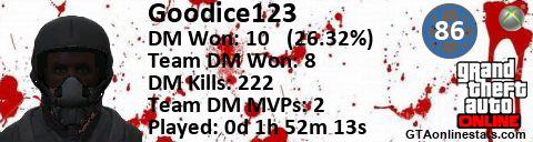 [URL=http://GTAonlinestats.com/showplayer/Goodice123][IMG]http://GTAonlinestats.com/dmsignature/Goodice123/sig.png[/IMG][/URL]