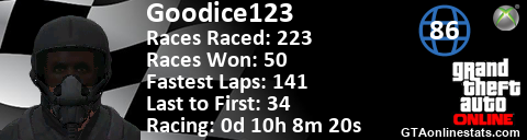 [URL=http://GTAonlinestats.com/showplayer/Goodice123][IMG]http://GTAonlinestats.com/racesignature/Goodice123/sig.png[/IMG][/URL]