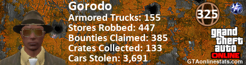[URL=http://GTAonlinestats.com/showplayer/Gorodo][IMG]http://GTAonlinestats.com/greysignature/Gorodo/sig.png[/IMG][/URL]