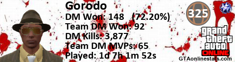 [URL=http://GTAonlinestats.com/showplayer/Gorodo][IMG]http://GTAonlinestats.com/dmsignature/Gorodo/sig.png[/IMG][/URL]