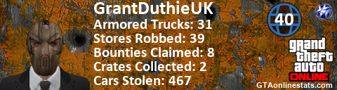 [URL=http://GTAonlinestats.com/showplayer/GrantDuthieUK][IMG]http://GTAonlinestats.com/crimesignature/GrantDuthieUK/sig.png[/IMG][/URL]