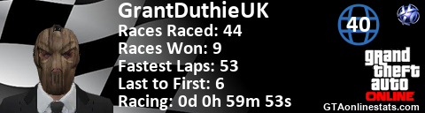 <a href="http://GTAonlinestats.com/showplayer/GrantDuthieUK"><img src="http://GTAonlinestats.com/racesignature/GrantDuthieUK/sig.png" alt="GrantDuthieUK" border="0" /></a>