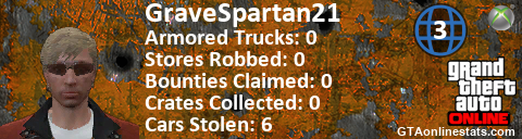 [URL=http://GTAonlinestats.com/showplayer/GraveSpartan21/2][IMG]http://GTAonlinestats.com/crimesignature/GraveSpartan21/2/sig.png[/IMG][/URL]