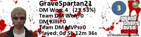 [URL=http://GTAonlinestats.com/showplayer/GraveSpartan21/2][IMG]http://GTAonlinestats.com/dmsignature/GraveSpartan21/2/sig.png[/IMG][/URL]