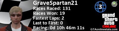 <a href="http://GTAonlinestats.com/showplayer/GraveSpartan21/2"><img src="http://GTAonlinestats.com/racesignature/GraveSpartan21/2/sig.png" alt="GraveSpartan21" border="0" /></a>